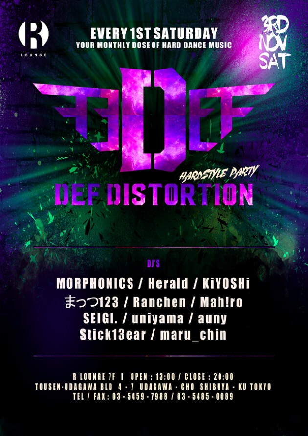毎月第一土曜日開催のHardstyleパーティDefDistortion!2018年10月の開催は3日土曜日13時オープン!