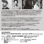 11/3(土) --- 2018年2回目の開催となるIN BUSINESSは、MAGIC NUMBERそしてAFRAをゲストに迎えての、音楽愛に包まれる豪華なサタデーアフタヌーン・セッション!