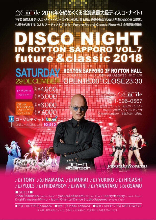 7年目を迎えるディスコナイト・イン・ロイトン札幌。 音と光と映像の融合で最新のDISCOをご提案! 札幌を代表するDJ&アーティストが集合。 Future Floor & Classic Floorの2会場同時開催!!