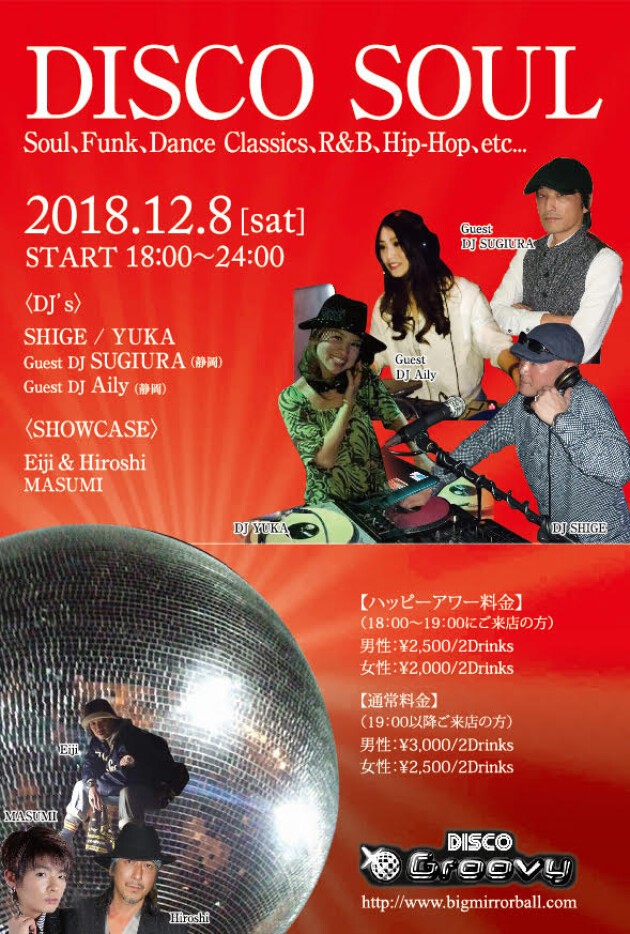 毎月第2土曜日は【DJ SHIGE&DJ YUKA】による黒音オンリーの夜に静岡よりDJ SUGIURA 、DJ AILYをゲストに迎えさらに黒くお届けします。