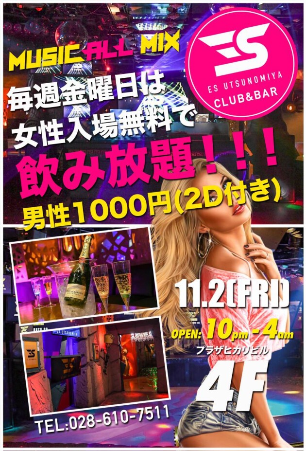 毎週金曜日は女性完全無料で飲み放題!!!是非皆様のご来場お待ちしております!