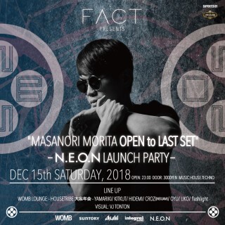 今回は ”FACT” のレジデント DJ である MASANORI MORITA が世界へ向けて発信する新レーベル “N.E.O.N / ネオン” の始動に伴い、オープン・ラストのロングセットを披露する。