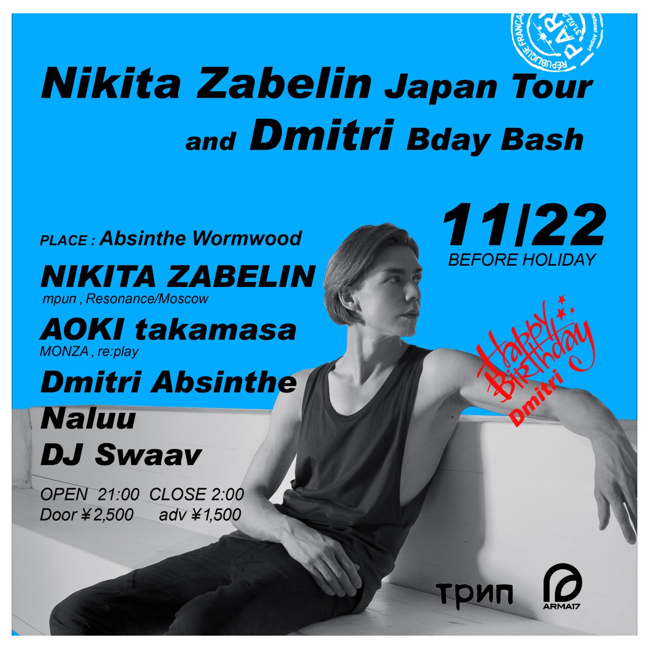 さらにカフェアブサンのオーナーでもあるのDJ Dmitri Absinthe のバースデーバッシュ!