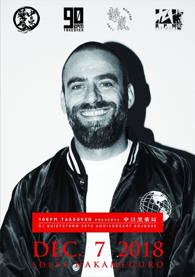 今年2018年に、DJ活動歴30周年を迎えた今や伝説のコレクティヴ中目黒薬局局長にして、中目黒UNDERGROUNDレペゼン元祖中の元祖であるのがDJ QUIETSTORM氏。