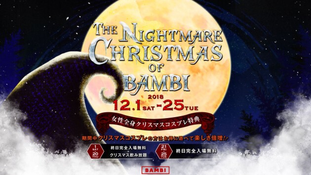 2018年12月1日(土)~12月25日(月)は「The Nightmare Christmas of BAMBI」を開催!