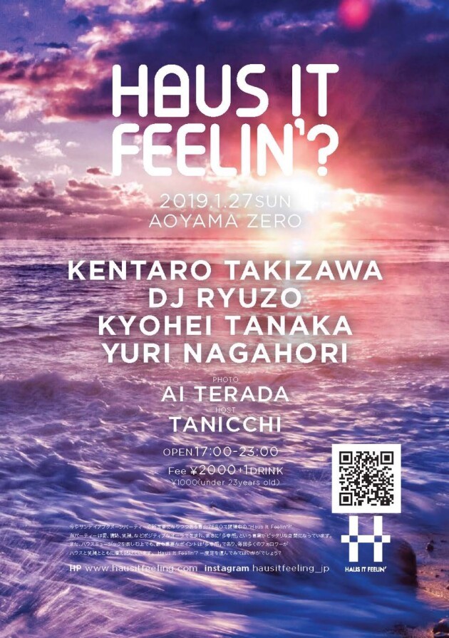 今やサンデイアフタヌーンパーティーの新定番になりつつある青山ZEROで開催中の"Haus It Feelin' ?"。当パーティーは愛、情熱、笑顔、などポジティブなオーラで包まれ、まさに「多幸感」という言葉がピッタリな空間になっています。また、ハウスミュー ジックを楽しむ上でも、最も重要なポイントは「多幸感」であり、毎回多くのフォロワーがハウスと笑顔とともに増え続けています。Haus It Feelin' ?、一度足を運んでみてはいかがでしょう?