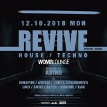 1F WOMB LOUNGE では、都内各所で活躍している若手メンバーで構成されたパーティー、リバイヴを開催。HOUSE と TECHNO を中心とした ALL MIX フロアで WOMB LOUNGE を盛り上げる。