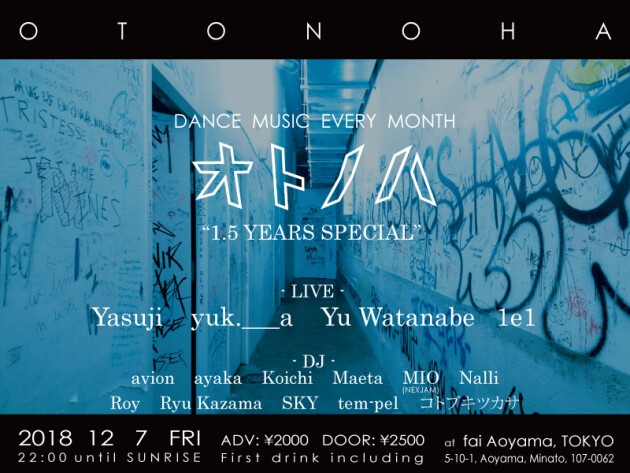 オトノハは2017年より始動し、音楽を通したOFF THE GRIDな交流の場を提供し続けている音楽会だ。開催の地は東京・青山の地下にカウンターを据えるBAR、Fai Aoyama。1年半を迎える今回は2つのフロアを解放しての開催となる。