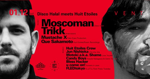 最近では海外での活躍も目覚ましいQue Sakamotoが率いる国内屈指のNu DiscoパーティーHuit Etoilesが1月12日に開催決定!モダンエスニックの革命家Red AxesやAcid Arabらと共に一大ムーヴメントを築き上げたMoscomanと、DixonやÂmeでお馴染みInnervisionsからのリリースも話題のTrikkがダブルヘッドライナーで登場し、スペシャルなショーケース、Disco Halal meets Huit Etoilesを開催!!