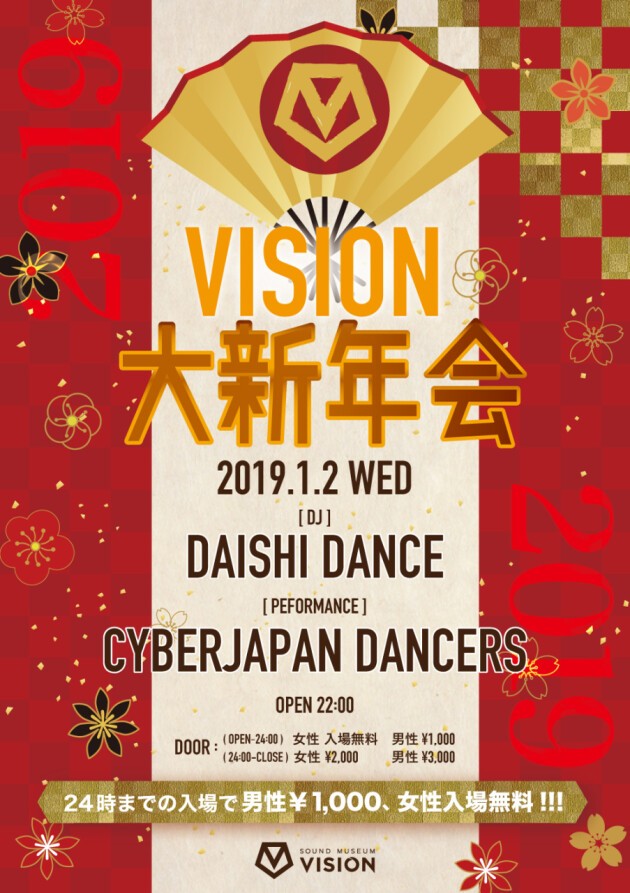 毎年恒例のVISION大新年会!!!24時まで男性¥1,000、女性入場無料!!!