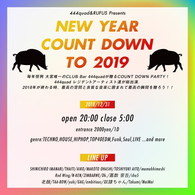 毎年恒例 大宮唯一のCLUB Bar 444quadが贈るCOUNT DOWN PARTY!
