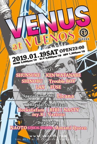偶数月第3土曜の大人気イベントHYPNOTIZE!!!に引き続き、裏の奇数月第3土曜はNEW PARTY『VENUS』が11月より開幕決定!!!