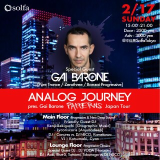 最新のディープ & プログレッシヴサウンドにフォーカスを充てたメインフロアのスペシャルゲストにはプログレッシヴハウス 〜 プログレッシヴトランスの改革者として多くの名曲を生み続けているイタリアの天才Gai Baroneが登場。2018年末に最新アルバム "Under Zero"を発表し、2019年には自身のラジオショーの名を冠したnew project "Patterns"のプロモーションとして世界に先駆けJapan Tourを敢行。