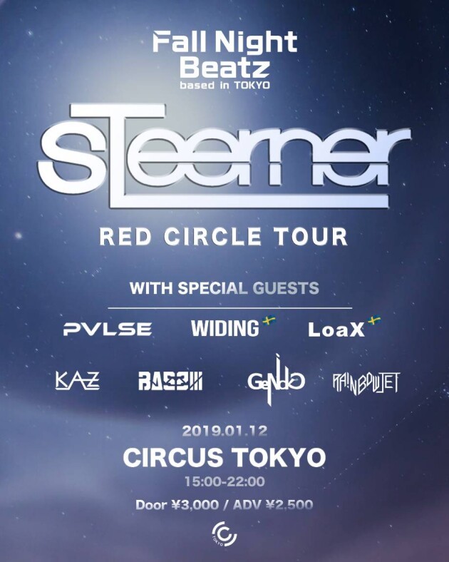 Steernerと共に出演するアーティストも”間違いない”ラインナップを揃えさせてもらいました、都内で活躍するBAS2III(shimon),rainbowjet,KAZ(FNB Crewより), Genick,そしてs2oや海外でも活躍する”PVLSE”も出演決定!!