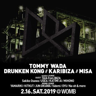 2019年、最初の開催となる SESSION は、レジデントの TOMMY WADA に加えて、札幌の WAARP より KARIBIZA。更に SESSION WEOMB よりリリースをし、海外のフェス ADE や OFF WEEK SONR、日本の ULTRA JAPAN などに出演。楽曲でも、昨年 beatport techno チャートで7位を獲得。またレジェンドの Ken Ishii とのコラボ曲が top100位に入るなど、世界的に活動を広げ今勢いを増している DRUNKEN KONG が出演。