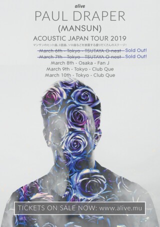 ポール・ドレイパー来日公演、各日チケット完売につき、急遽大阪を含む3日間の再追加公演開催決定!! マンサンの元フロントマンの彼が、スペシャルなアコースティックセットを披露!!