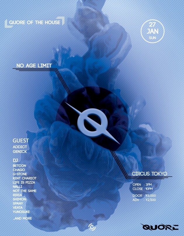 2019年最初にお届けするのはQUORE初となるHOUSEデイイベント。 新進気鋭のアーティストと共にQUOREの新境地を体感せよ…