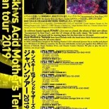 2018年、ヴォーカリストにジョンソンTsuを迎え、全21カ国100公演以上を行なった「AMT宗家」ことAcid Mothers Temple & The Melting Paraiso U.E.O.、今回のツアーに限り「Reverse of Rabirth set」「Hyper Reckless Drive set」「Chaotic Cosmic Chan-son set」というコンセプトの異なる3タイプのセットを日替わりで演奏する予定。