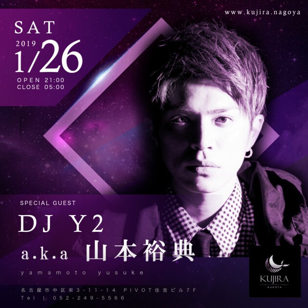 DJ Y2(a.k.a 山本 裕典)がKUJIRA NAGOYAに登場。愛知県出身で第18回ジュノン・スーパーボーイ・コンテスト準グランプリ&フォトジェニック賞&読者投票1位と絶大な人気を誇る。役者だけではなくDJ、ミュージックシャンとしても着実なキャリアと絶大な人気がある。