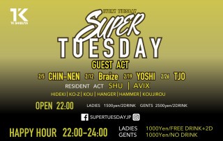 東京の遊びの中心「渋谷」の新たな遊び場「TK SHIBUYA」が、毎週火曜日に開催するパーティー「SUPER TUESDAY」!この「スパチュー」ではEDMは勿論、HIP HOPやベースMUSIC等、今、世界で主流の音楽がジャンルレスに体感できる!