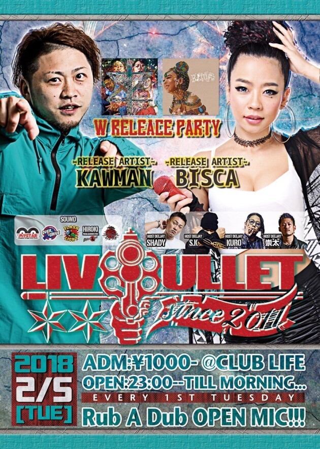 W RELEACE PARTY [Release Artist] KAWMAN BISCA [Sound] MY STAR / OVER DRIVE / FLASH LIGHT HIROKI from BARRIER FREE / Sound SUSHI [Host Deejay] SHADY / S.K / KURO / 崇太 Rub A Dub OPEN MIC!