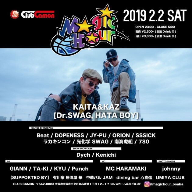【MAGIC HOUR vol.5】2/2(土)☆偶数月第1土曜開催『MAGIC HOUR』★★SPECIAL GUEST DANCERにKAITA&KAZ (Dr.SWAG / HATA BOY)が登場☆☆豪華ダンサー多数出演★★