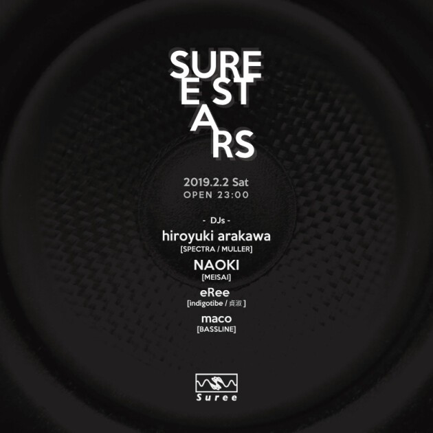 様々なシーンをベースに活動するDJ陣を迎えてお送りするTECHNO/HOUSE系レギュラーパーティ"SUREE STARS"