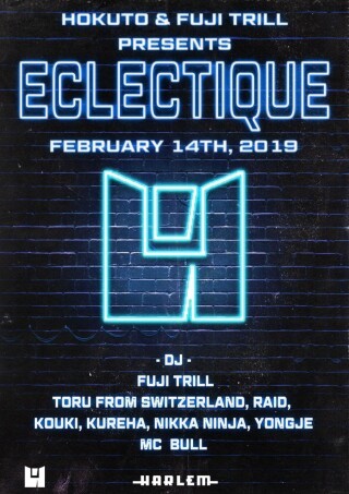 DJ HOKUTOが5年に渡り毎年2回のヨーロッパツアーを敢行する中で、アムステルダムで出会った今までのDJの常識を覆すDJスタイル“Eclectic”。そして、音楽のメッカヨーロッパで毎夜繰り広げられる、自由な音楽感と遊びのスタイルに衝撃を受け、そのパーティ感とDJスタイル再現するパーティとしてスタートしたのが『ECLECTIQUE』。