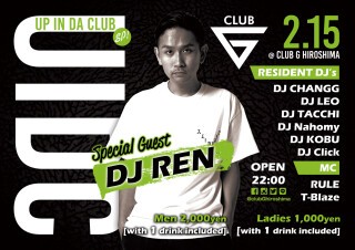 広島毎週金曜日最強 HipHop Party! "Up In Da Club SP!" SP Guest:DJ REN (RedBull Thre3Style 2014 JAPAN CHAMPION)