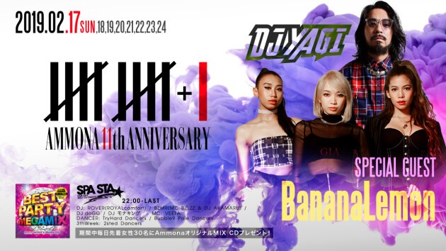 祝Ammona11周年!「BANANA LEMON」と「DJ YAGI」がスペシャルゲストに登場!期間中毎日先着女性30名様にAmmonaオリジナルMIX CDプレゼント!