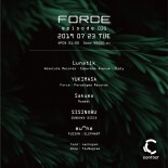 The party crew FORCE continues to provide timeless electronic music including modern techno. For this episode, hailing from Rome is the label owner of 〈Absolute Records〉, Lunatik makes his Japan debut. His name has been archived on various European media this year. The atmospheric synthesizer sounds lusciously layered to create a feeling of outer space are already gaining the likes of many techno freaks in Japan, as well as throughout the world. YUKIMASA, the organizer of FORCE and who will be joining the EU tour next month with the guest will be supporting the act. Sakuma, who promotes his own party Modest, joins the lineup as well as SISINOBU from ZUNDOKO DISKO. To complete the lineup, mu”he, who has recently launched a new party FUSION, joins the crew to bring an evening of techno.