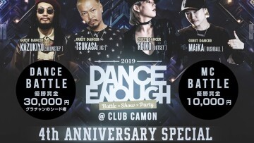 【DANCE ENOUGH 2019】3/20(水/祝前日)☆4th ANNIVERSARY SP★★DANCE BATTLE & MC BATTLEエントリー随時募集中!!!!