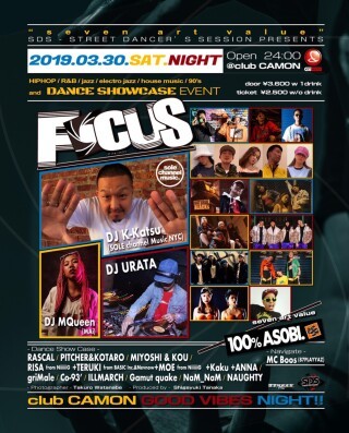 【FOCUS】3/30(土)☆第5土曜開催HIP HOP PARTY『FOCUS』☆☆ハイパフォーマンスな豪華ダンサー多数出演★★