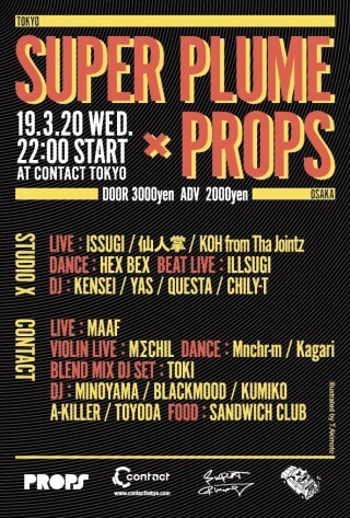 For this special occasion, Super Plume teams up with Osaka’s hip hop party crew PROPS. HEX BEX, DJ QUESTA, KOH from Tha Jointz joins the decks with Tokyo’s acts.