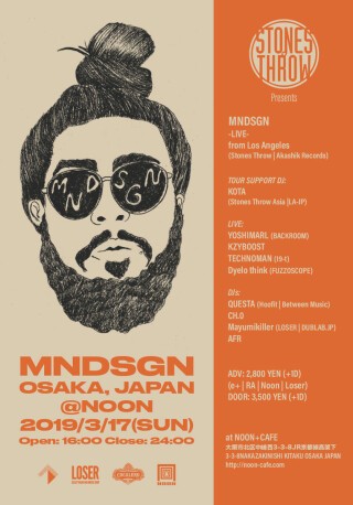 LA発―世界最高峰のインディレーベル:Stones Throwから次世代を担う最注目アーティストの登場!キーボード、 ビートメイキング、歌もこなすLAシーン屈指の新世代ビートメーカー/プロデューサー: MNDSGN (マインドデザイン)の大阪公演が3/17(日)にデイイベント開催