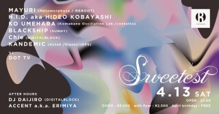 日本を代表するテクノアーティストをレジデントにかまえる”Sweetest”が2019年4月13日に待望の第2回を開催する。