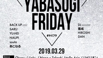 【YABASUGI FRIDAY】3/29(金)☆EVERY FRIDAY DANCE and GOOD MUSIC PARTY『YABASUGI FRIDAY』#ヤバフラ☆☆ダンサー多数出演★★