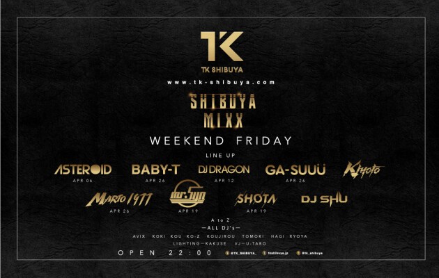 毎週末開催!TK SHIBUYAが誇る週末看板パーティー!