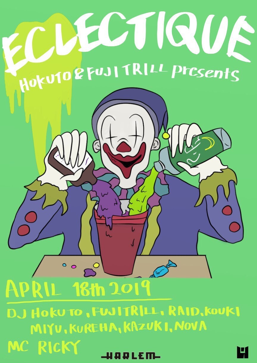 DJ HOKUTOが5年に渡り毎年2回のヨーロッパツアーを敢行する中で、アムステルダムで出会った今までのDJの常識を覆すDJスタイル“Eclectic”。そして、音楽のメッカヨーロッパで毎夜繰り広げられる、自由な音楽感と遊びのスタイルに衝撃を受け、そのパーティ感とDJスタイル再現するパーティとしてスタートしたのが『ECLECTIQUE』。