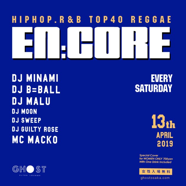 2017年現在も常時600人を超える集客で賑わう毎週土曜日、Ghost ultra loungeの看板イベント「EN:CORE」(エンコア)!