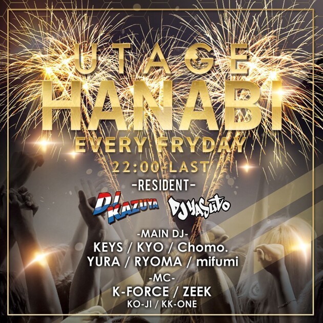 毎週金曜日に開催してるUTAGEの金曜レギュラーPARTY"HANABI"!!