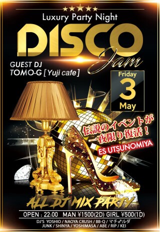 あの伝説のイベントが一夜限り復活!! 今回は、 Yuji cafeよりDJ TOMO-Gがゲスト出演!懐かしのDJメンバー再集結!! 宇都宮の夜を盛り上げます。