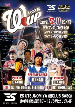 13回目を迎えた「What’s Up!?」(ワッツァップ) !! 今回はスペシャルゲストに「DJ NAO」ピックアップに「DJ T-LOW&DJ AKIYO」 が来宮!! この日は関東を中心に勢力的に活躍する3人のDJ PLAYを堪能してください☆