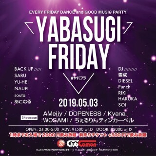 【YABASUGI FRIDAY】5/3(金)☆EVERY FRIDAY DANCE and GOOD MUSIC PARTY『YABASUGI FRIDAY #ヤバフラ』★★