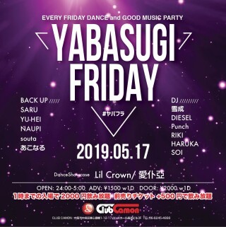 【YABASUGI FRIDAY】5/17(金)☆EVERY FRIDAY DANCE and GOOD MUSIC PARTY『YABASUGI FRIDAY #ヤバフラ』★★