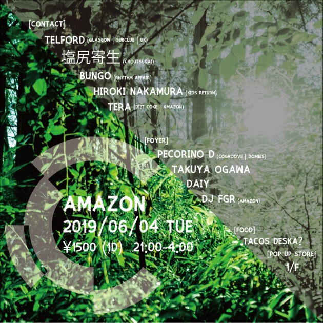 6回目の開催となる今回、Contactフロアはテクノ& ハウスミュージックをテーマにイギリス・グラスゴーの著名クラブSub Clubのストアマネージャー兼レジデントDJであるTelfordがプレイする。そしてFoyerフロアはミニマルミュージックをテーマとしつつ、当パーティのオーガナイザーでもあるTERAが手掛けるブランド、1/Fのポップアップストア&2019A/Wのサンプル展示や、Tacos Deska?により艇寧に仕込まれた謹製フードも出店。あなたの衣/食/音を満たすスペシャルな夜となるだろう。