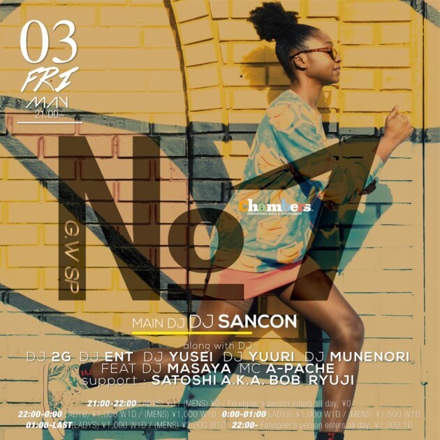 21:00-22:00(LADYS) ¥0 / (MENS) ¥0 / Foreigner’s person enters all day, ¥0