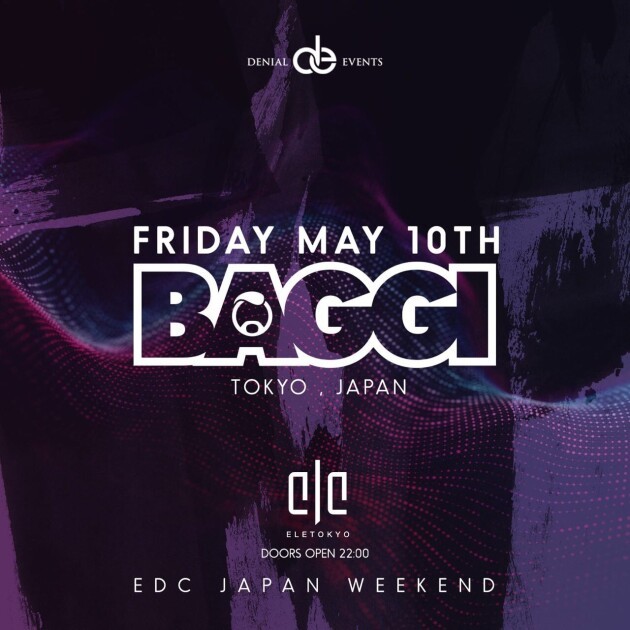 5月10日(金)「EDC Japan」でヘッドライナーを務めるDJ/Producer Baggiとマイアミ発Denial Events がタッグを組みELE TOKYOにてイベントを開催決定!