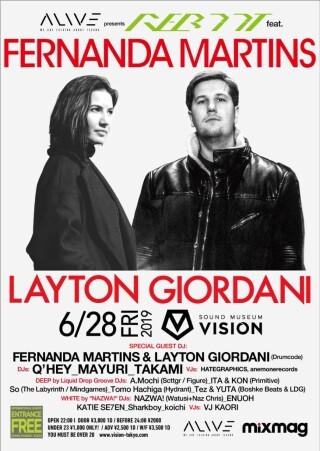 東京のテクノ・シーンにおいて要衝と言えるパーティーREBOOT。Charlotte de Witte、Amelie Lens、Fatima Hajjiと、世界が注目する現代版ハード・テクノサウンドを奏でるDJ陣を東京に紹介してきたこのパーティーが、VISIONのALIVEと共に送り込む次なる一手は、グローバルテクノシーン最前線で活躍する二人のこのプレイヤー達だ。 ブラジル出身でスペインに拠点を構えるFernanda Martinsは、DJプレイにおいてもレーベル運営においても、テクノとハードテクノの双方を自在に操る稀有な存在の女性DJ。そしてニューヨーク生まれでアムステルダムで活動するLayton Girodaniは、世界最大のテクノレーベルDrumcodeからアルバムでのデビューを果たすという快挙を成し遂げた若手最有力のサラブレッドである。この2名を迎えて展開される今回の「REBOOT」においても更に次なる世界観を魅せてくれる事間違いないであろう。初夏に始まるテクノ晩餐会にご期待ください!