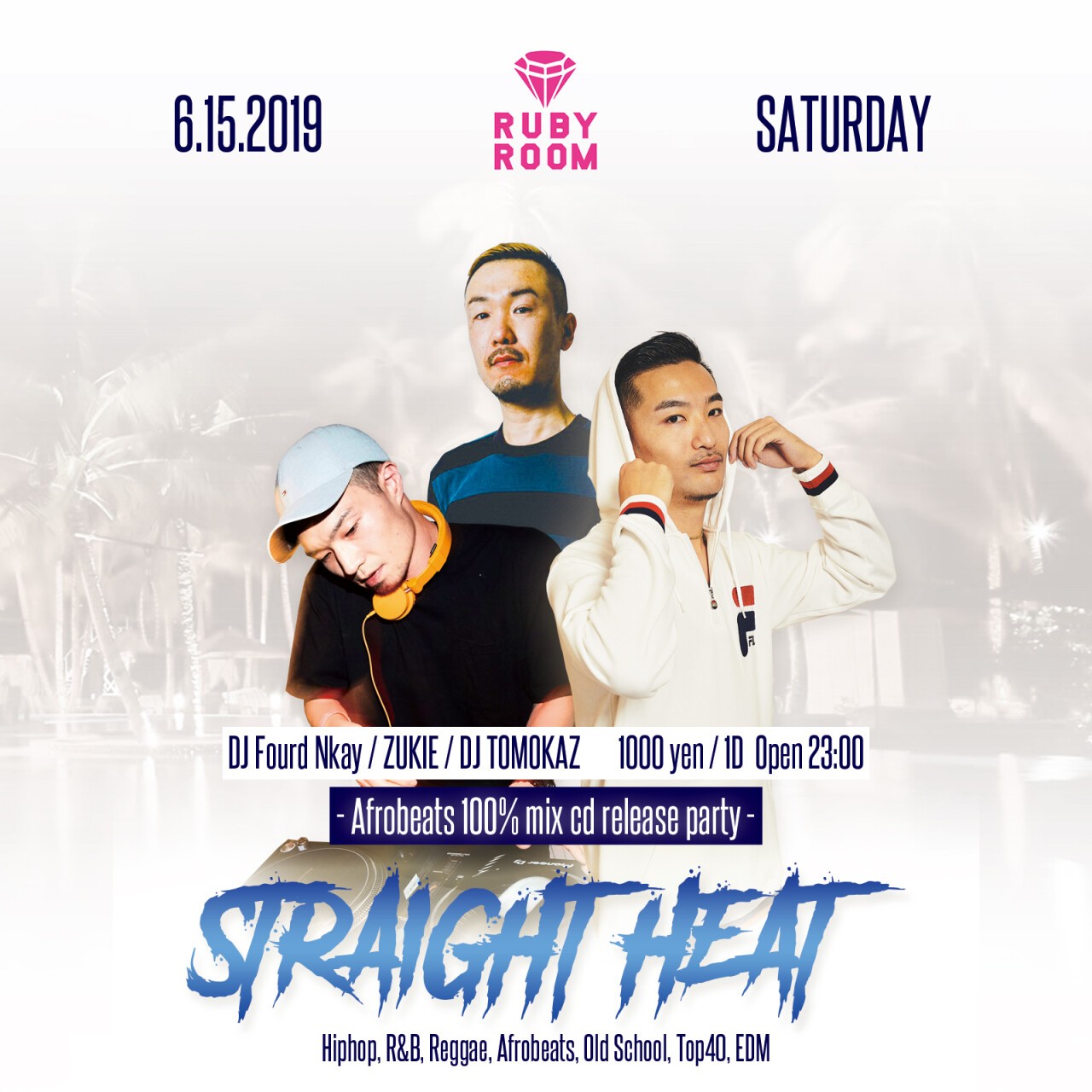 DJ Fourd Nkay presents "Straight Heat Saturday" coming to Tokyo from New York! 6/15 Saturday at Ruby Room Shibuya, DJ Fourd Nkay, Zukie of MidnightRock and DJ TOMOKAZ play Hiphop, R&B, Reggae, Afrobeats, Old School, Top40, EDM and all. The party starts at 11pm, till the sun up. This is also release party for DJ Fourd Nkay's mix CD "Afrobeats 100%". Plz join it!